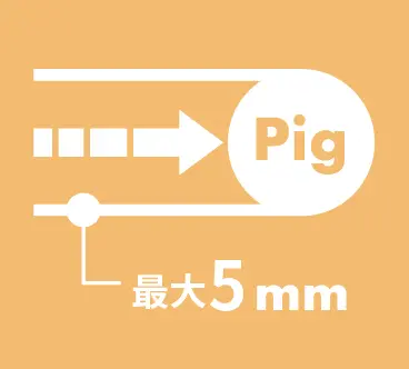 マンション等の小口径配管からビル・工場等の大口径配管まで幅広く適用できる工法です。発泡ウレタンに鋼鉄のスパイク等を埋め込んだ砲弾形状のクリーニングピグを空気圧力で走行させ、錆や汚れを除去するピグ研磨工法にて配管をクリーニングした後、球形のライニングピグを空気圧力により移動させ、高粘度のライニング剤(2液性エポキシ樹脂)を、配管内に連続して塗布します。 ライニング後、配管内には継ぎ目のない樹脂パイプが形成されます。